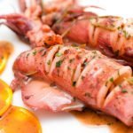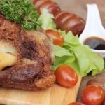 Eindelijk een culinaire connectie tussen München en Tokio. Sappige varkenspootjes in krokante tempura. Een fruitige component is de Tonkatsu-saus, die meestal wordt geserveerd met de Japanse schnitzel gebakken in panko (Tonkatsu).