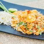 Voeg een dun gesneden omelet, een schijfje limoen en gemalen chili toe. In plaats van platte rijstnoedels kunnen ook jasmijnrijst (Artikelnr. 60151), dunne rijstnoedels (Artikelnr. 60113) of andere Chinese noedels, zoals brede noedels (Artikelnr. 60103) worden gebruikt. Beschikbaar bij Golden Turtle for Chefs ™